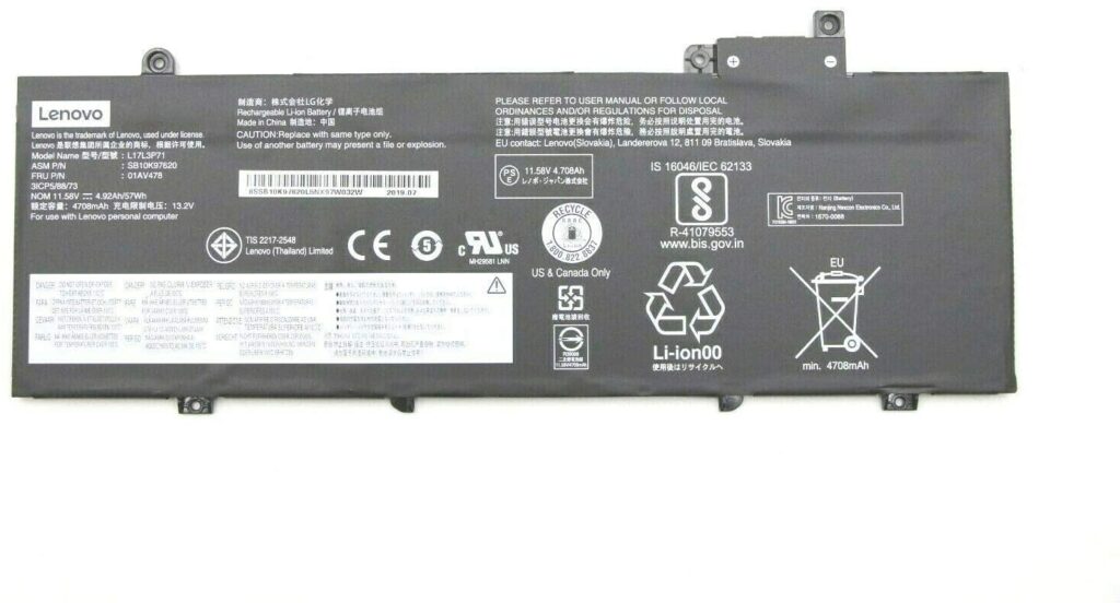 01AV480 Lenovo Thinkpad T480s 57Wh SB10K97622 Laptop Battery